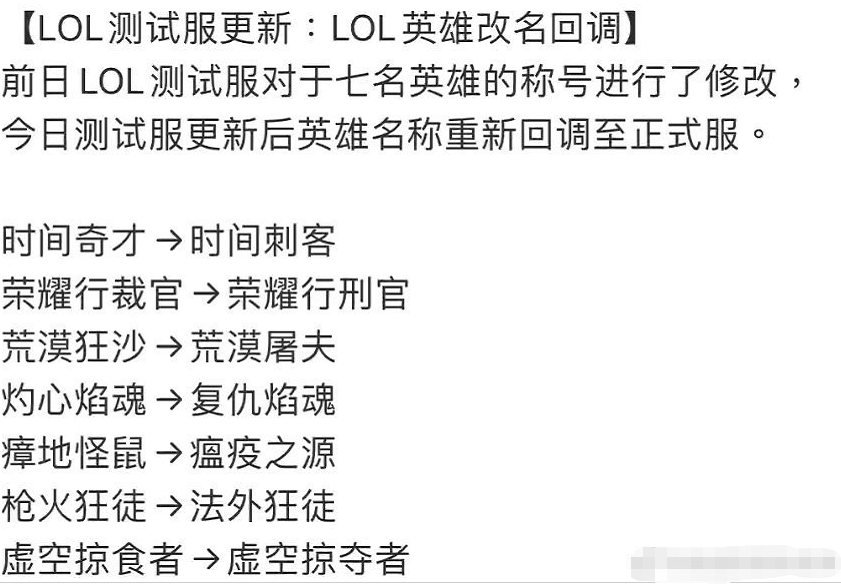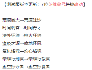 前两天,体验服发布了一个消息,将对一些英雄的称号进行改动。