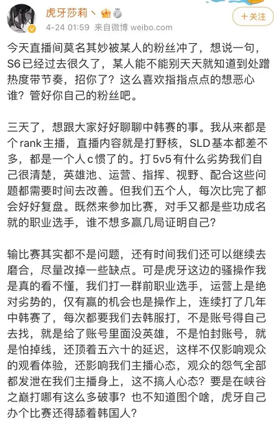 前几天,莎莉在微博上发了一条微博,公开diss“S6的第一个王者”(炫神)在中韩对抗赛解说时,发言偏袒韩国队。没想到却被炫家军们挖出了,队友在讨论BP时,他在一旁斗地主。