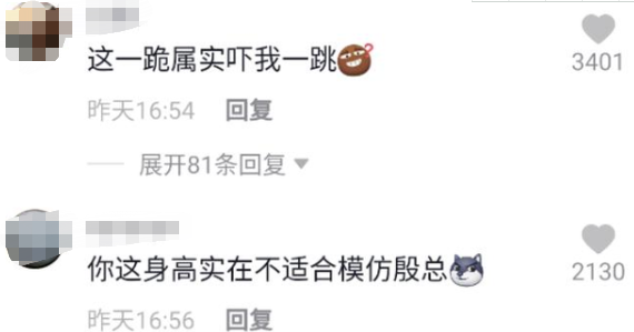 而这条视频底下,很多网友都在嘲讽艾比这种浮夸的拍摄创意。并且还有网友吐槽艾比说:“男儿膝下有黄金”。