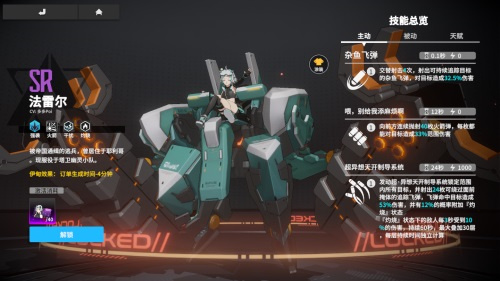 法雷尔是塔卫幽灵小队的成员,有着强大的爆破能力,不论面对怎样的敌人,都有信心将它们通通炸毁。她的专属机甲和她的发色、服装一样,有着清新的薄荷绿色调,尽显设计美感。