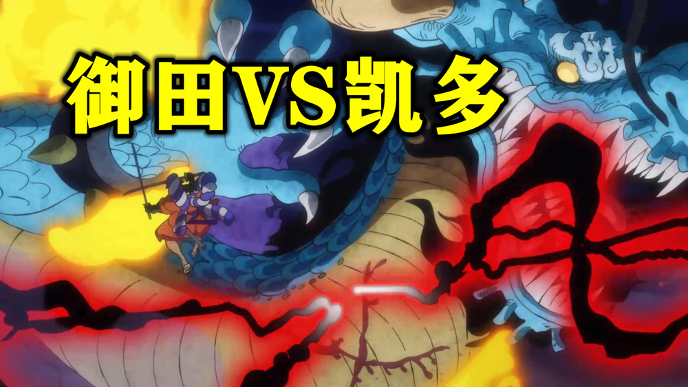 艰难站起来的御田再次袭向凯多,正面接中凯多的热息,然后凭着牛逼的实力突破凯多的招式,龙懵逼了,还没反应过来就被御田砍了,从奎因口中得知这应该是他认识凯多以来第一次被真实伤害到,变成人形态的凯多那可是很愤怒的用狼牙棒挥向御田,御田刚想了结他时被黑炭老太婆用桃之助的脸孔给欺骗分心然后被凯多打倒。话说一个狼牙棒就不行了?刚刚接了两次热息都没事,看来当时路飞被一棒子秒杀也不算太丢脸啊。