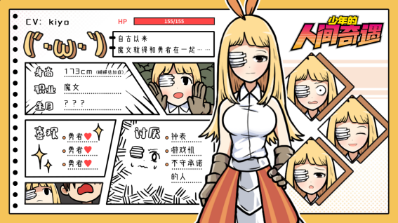 双马尾=傲娇,白毛老婆=腹黑,戴眼罩=中二病?在《少年的人间奇遇》中,你将邂逅三位看上去有些脸谱化的女主,当然,只是看上去而已。