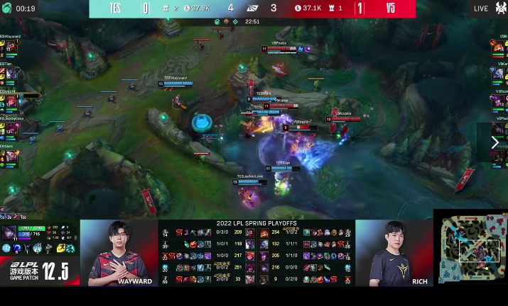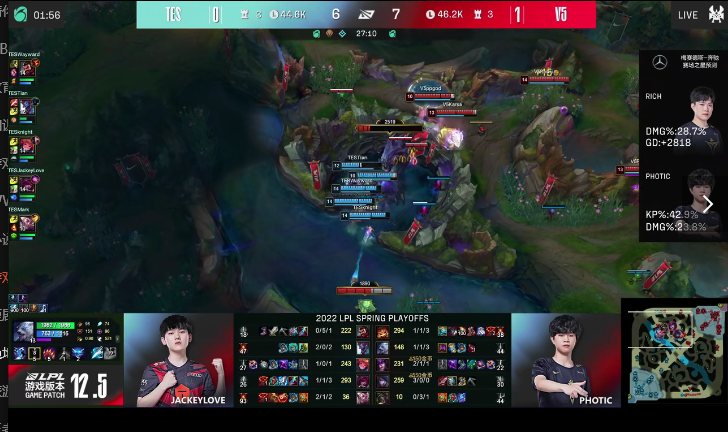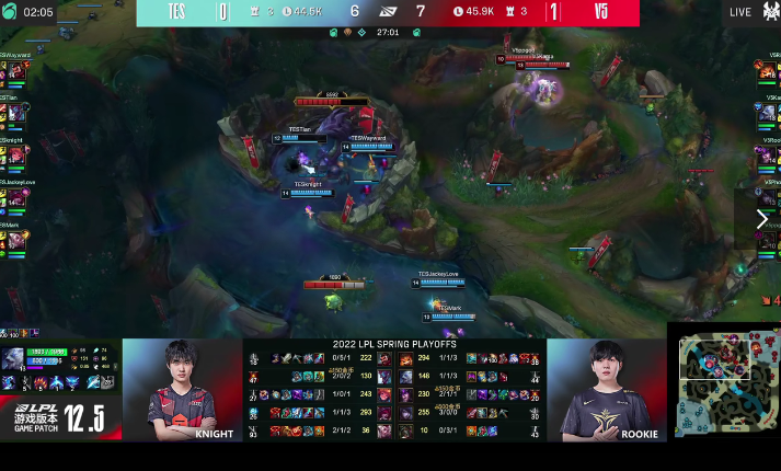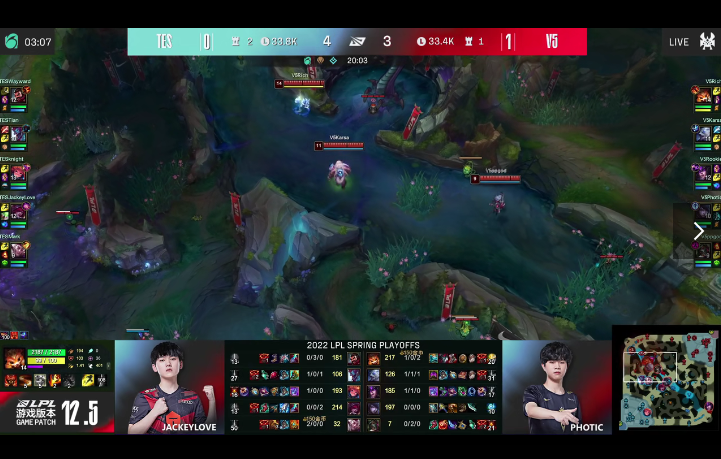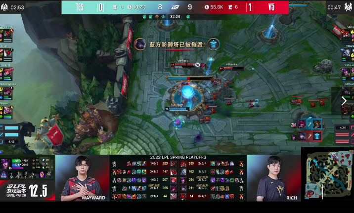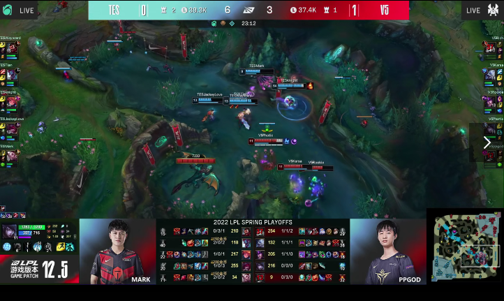 4月12日,英雄联盟LPL赛区四强揭幕战打响,由TES战队对阵V5战队,双方在第一局对战中由V5率先拿下首局的胜利,接下来双方进行第二局比拼。