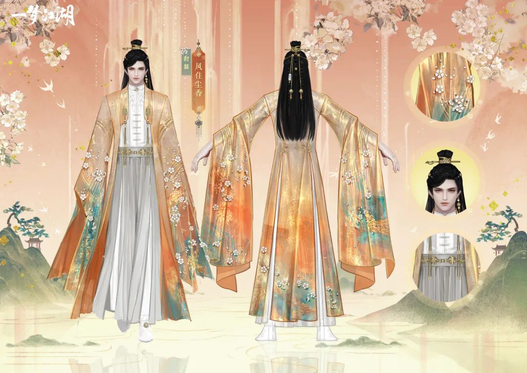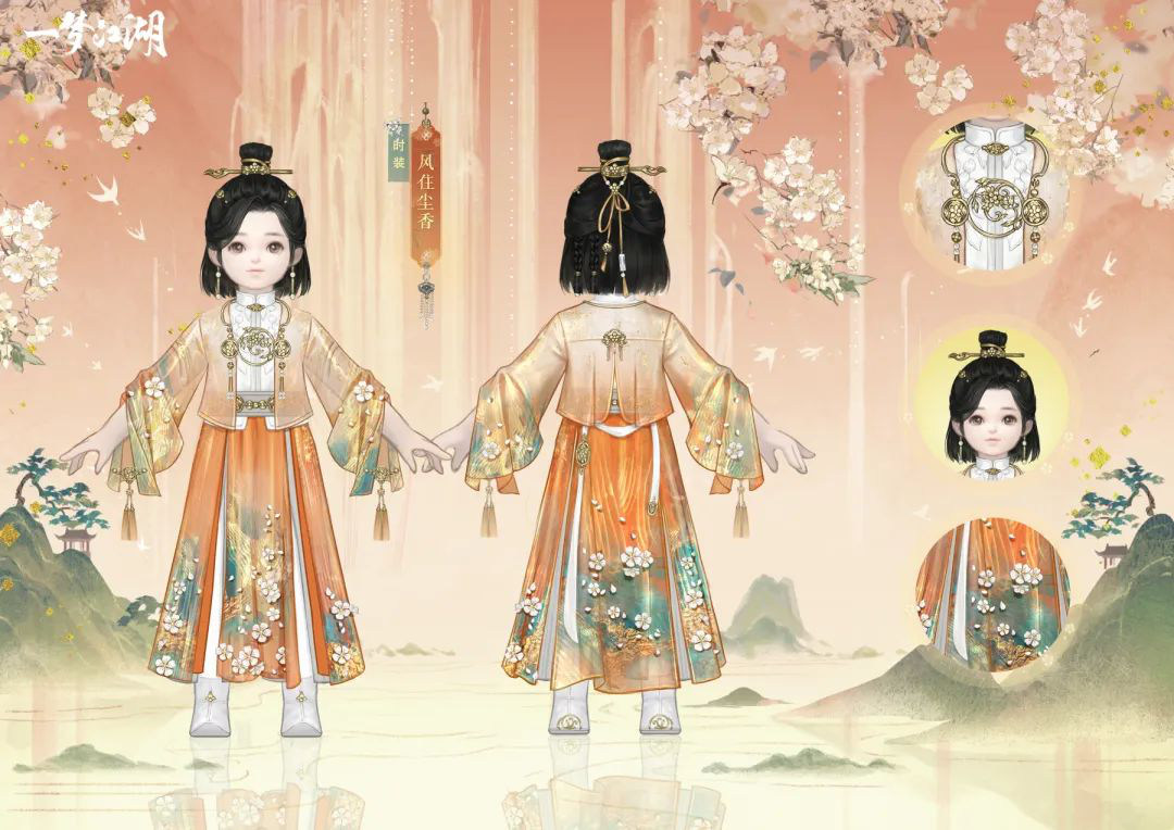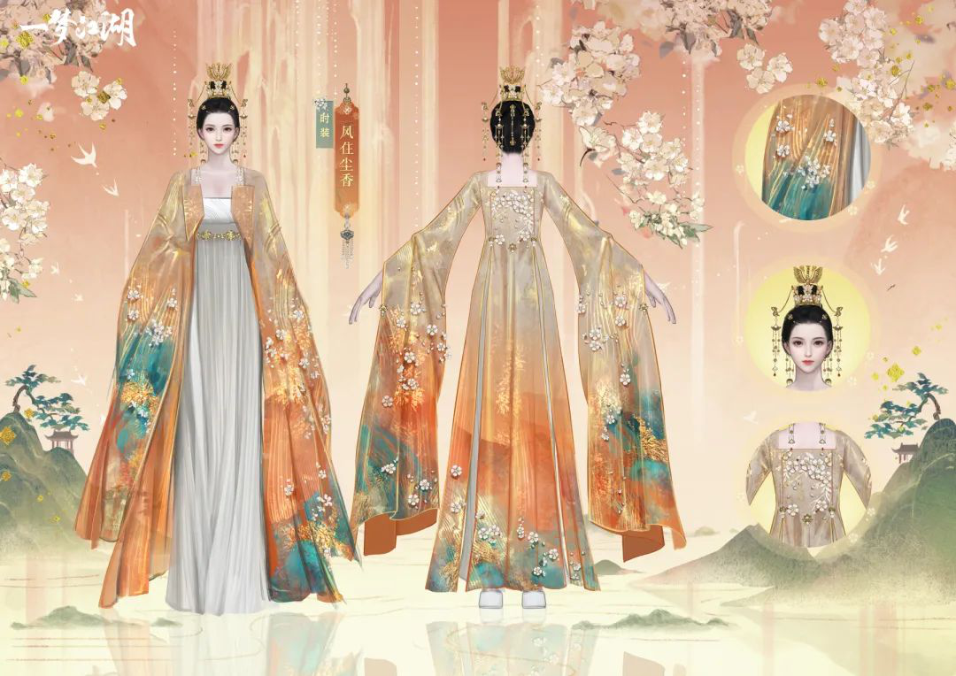 映庭含浅色,凝露泫浮光。日丽参差影,风传轻重香。随着天气逐渐炎热,《一梦江湖》的云锦楼师傅也为各位少侠带来了立夏时装“风住尘香”。各位少侠换上新时装出游,以霞辉为裳,品风间梨香。