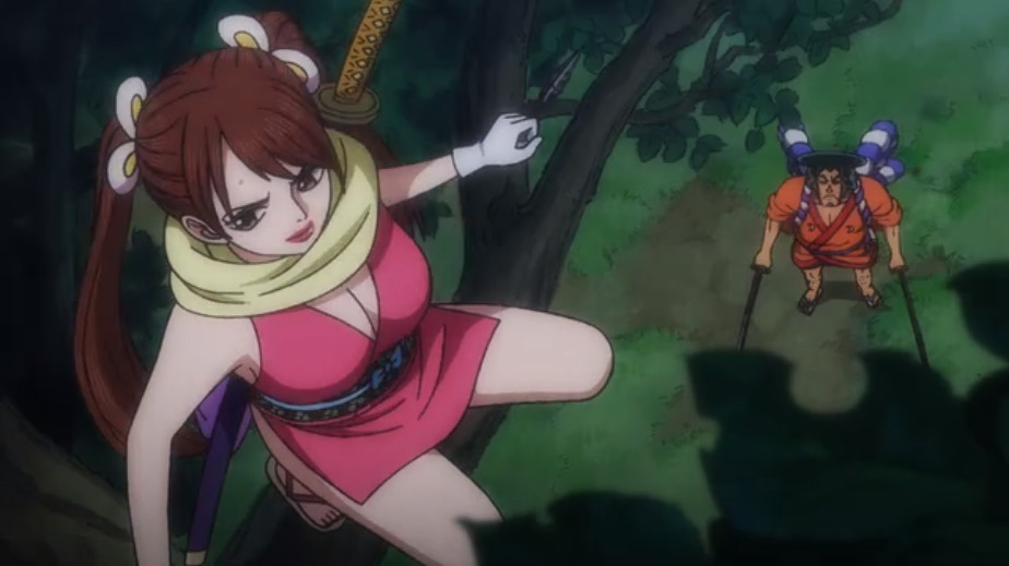 在动画最新的972集中,光月御田率领他的家臣赤鞘九侠来到了凯多的大本营,而凯多也带着他的手下们严阵以待。一开始,御田和九侠就砍翻了众多的小兵,就连之前御庭番众的女忍者阿忍也赶来帮助御田。