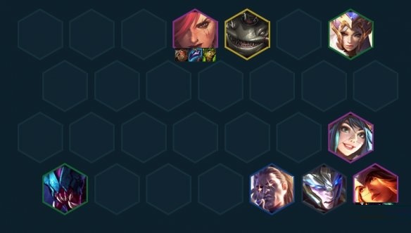 后期决赛圈上九,单挂二星五费质量卡即可,可以是杰斯和金克丝,前排质量够就把杰斯扔后排加攻速让希维尔尽快开启,有强袭转可以考虑开6强袭,也可以看情况开高海克斯,高强袭海克斯的希维尔伤害爆炸!
