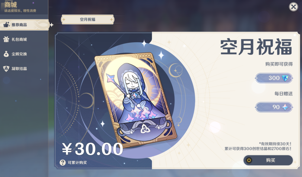 总的来说,游戏里“氪648分12期免息”的方式,对于大部分承受能力有限的玩家,无异于杀鸡取卵的做法,我是不看好这种方式的。说实话,《原神》不氪金也是能玩的,虽然有时候打深渊副本确实吃力,但也并不是什么大问题。如果你实在觉得自己该有部分5星角色,氪个小月卡,慢慢积攒原石,也是有机会能在理想角色UP的时候抽到的。