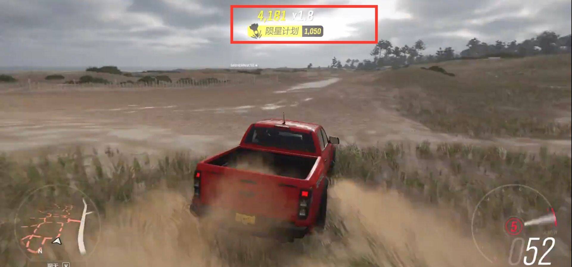 3.我们进入之后,需要先来一个空中飞车让四个轮子腾空,然后再破坏草地或者其他东西就能获取陨星计划了。