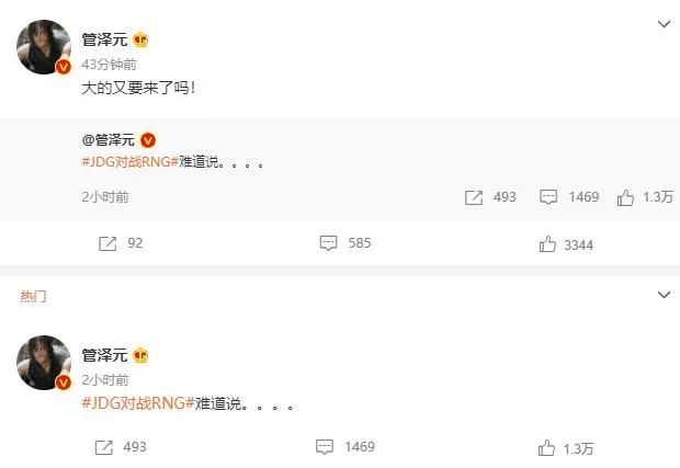 值得一提的是,担当本场比赛解说的是大家极为熟悉的管泽元和瞳夕。素有着管大校之称的管泽元,一手“管学”无人能及。不过,在RNG同JDG的比赛中,管泽元“散功”了~