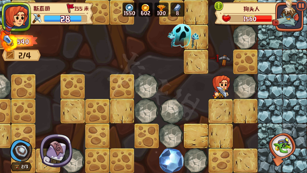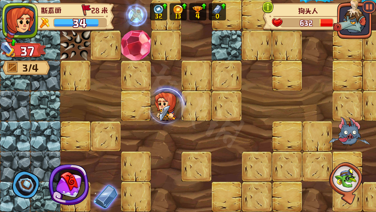 游戏中也设置了休闲游戏中都会有的“老三样”来帮助玩家探索,它们分别是可恢复鹤嘴锄耐久的黄金鹤嘴锄,使玩家免受一次伤害的魔法护盾与将周围障碍变为宝石的炼金炸弹,每一种道具在游戏过程中的作用都十分强大,想突破到更深层的地脉,少不了这三样道具的助阵。哎,你是不是觉得发现了游戏的氪金点,但实际上,《疯狂粉碎方块》是一款真正免费的游戏,不仅道具无需购买无限供应,就连各类游戏礼包也全部都是使用游戏内金币进行支付,也就是说,即便你不想花钱玩游戏,也不必总担心手上的免费道具没有用在刀刃上,反正不限数量,放心大胆地去尝试吧!
