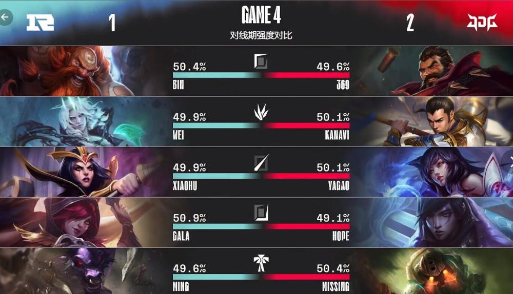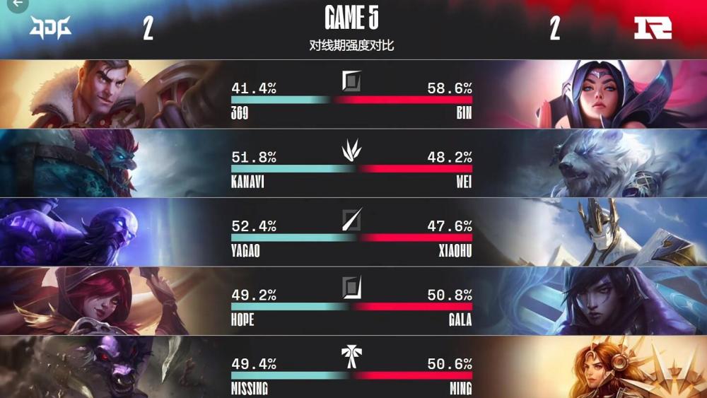 第四局比赛前期对线时,JDG经济其实一直处于领先,但是在25分钟大龙团战时,JDG率先开龙却被RNG抓住一会,打出一波0换4,然后顺势拿下大龙经济完成反超。最终凭借着大龙BUFF推进一波结束比赛,比赛再次来到了关键的决赛局。