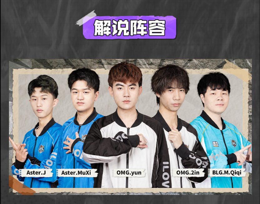 本次比赛五位解说分别为: