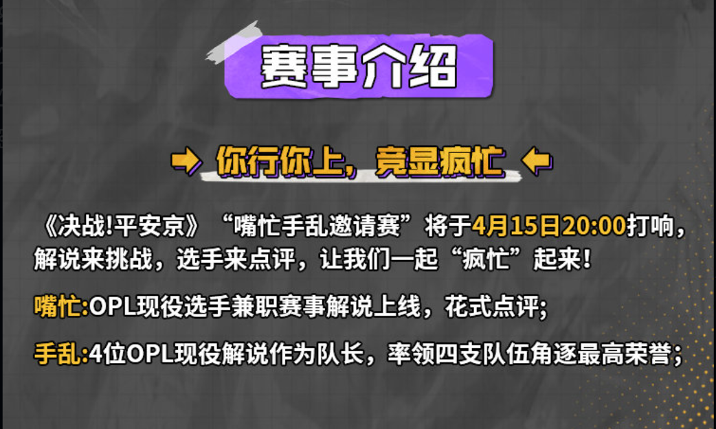 是职业选手嘴先“忙”,还是解说们手先“乱”,4月15日20:00起我们拭目以待!