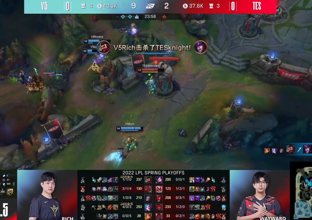 英雄联盟2022LPL春季半决赛在近日正式开打,在首场比赛当中,TES以3-2战胜V5,他们在落后两局的情况下连续追了三把,最终挺进胜者组决赛!不得不说TES真的是让二追三的专业户,他们在S10全球总决赛八强赛3-2战胜FNC,接着又是在德杯中3-2战胜FPX,如今再度在完成了这样的壮举,只能说这支队伍的韧性真的是很强了!他们在春季赛中后期,有了上单wayward和辅助Mark加入后,把整个兄弟联盟完全给提起来了,彻底激活了整体的协作性,从之前的中下游再到前四,如今他们已经在四强赛里率先冲进胜者组决赛,相信接下来还会有更多精彩表现吧!