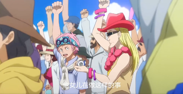 接着,字幕告诉我们,乌塔是“世界的歌姬”,确定了她的身份。随后是另一个原创人物戈登,以及一系列会出场的老角色,包括赤犬、罗和贝波、克比和贝鲁梅伯、巴托洛米罗。除了赤犬外,其他人似乎都扮成了乌塔的歌迷。