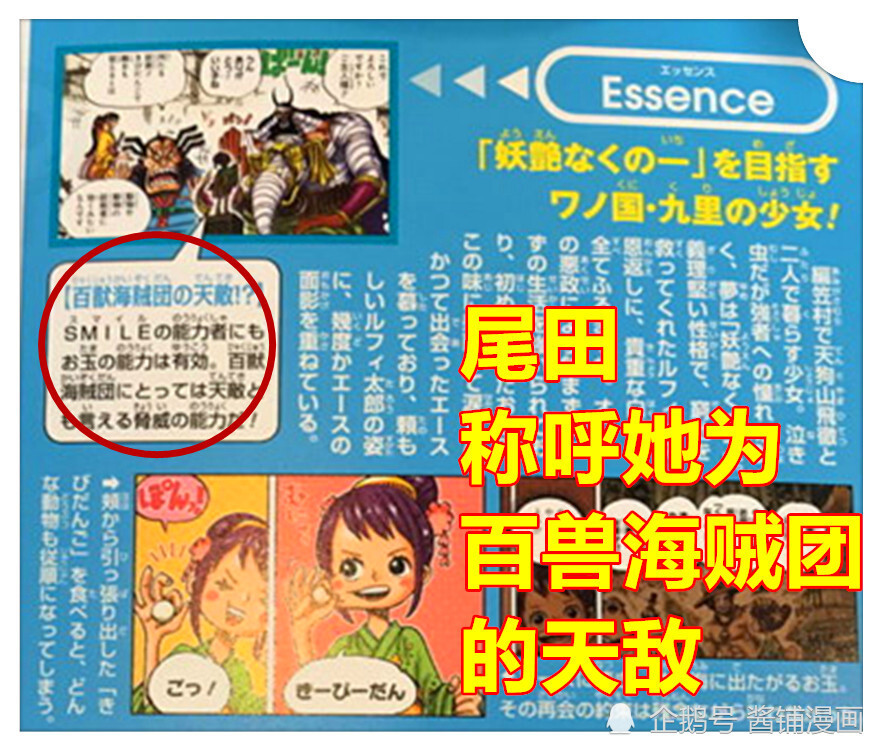 这样解释了阿玉的能力来源,在生命卡资料集中,作者尾田称呼阿玉是百兽海贼团的天敌!