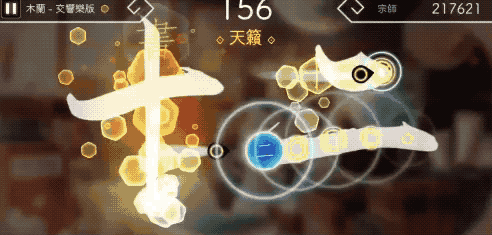 它将“文字”和“诗词”融合进一首歌,蘸着墨水挥洒横平竖直、横纵斜飞的方块字,在音乐间飞舞。随着节奏点击诗词,玩起来的体验不像是在打歌,而是根据节奏吟诵。