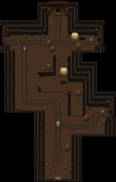 细节——在洞穴中的部分区域能在矿车上看到《钻石/珍珠/白金》中的怪力岩石;这里的背景音乐与《黑/白》中的冷冻仓库背景音乐相同。