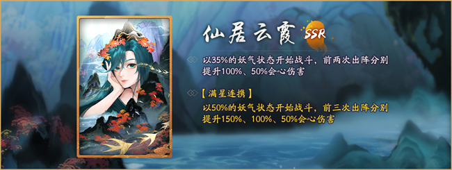 卡池还投入了SSR拓印“仙居云霞”、SR拓印“霓为衣兮”同样拥有更高的抽取概率。如果降妖师大人在“仙居韦羌”卡池中连续唤灵却人连续唤灵但未得到概率提升的SSR时,还可以获得活动唤灵符、SSR碎片等奖励。