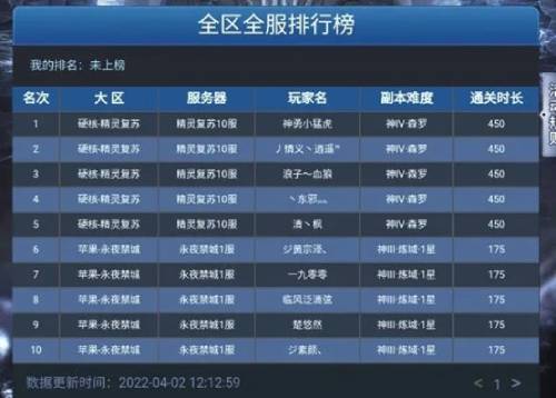 这支全球首通小队来自于硬核-精灵复苏10服,通关用时450秒,他们分别是:神勇小猛虎、丿情义丶逍遥℡、浪子~血狼、丶东邪灬、清丶枫。