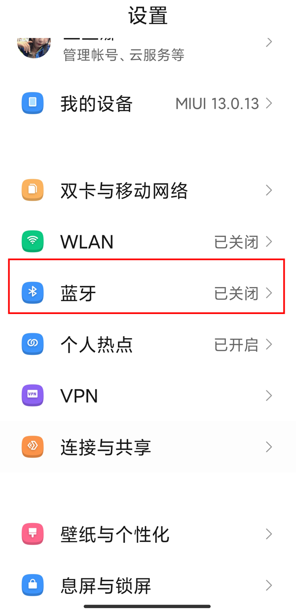 2、打开手机设置,点击【蓝牙】。