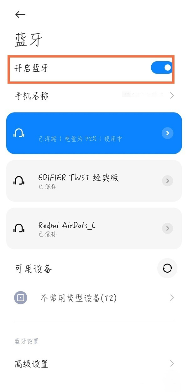 3、将【开启蓝牙】的开关开启,点击需要连接的蓝牙设备,等配对成功即可。
