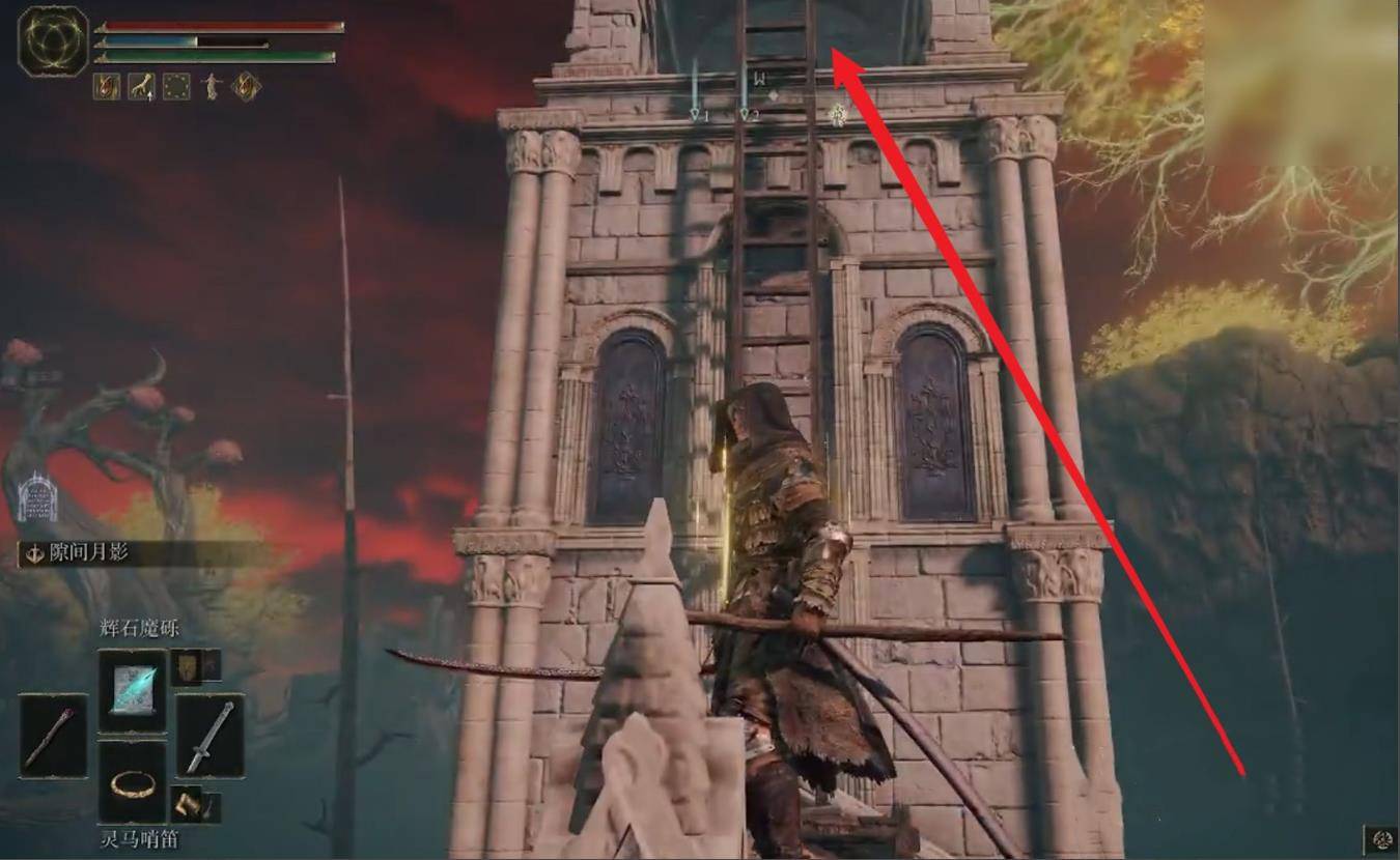 2、随后沿着魔法镇瑟利亚右侧楼梯爬上灯塔顶部。