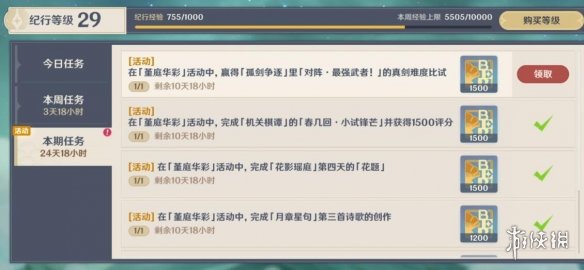 活动奖励(拿满):原石x40、十二本大经验书、二十四本小经验书、摩拉、武器矿若干
