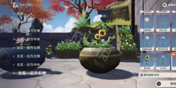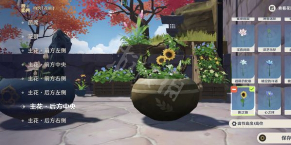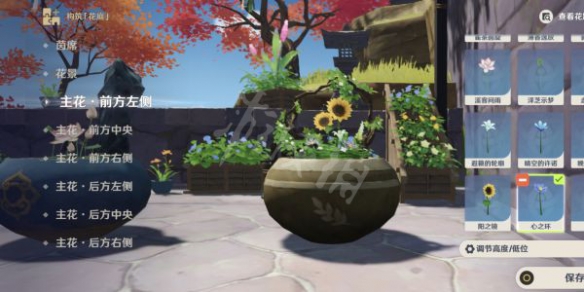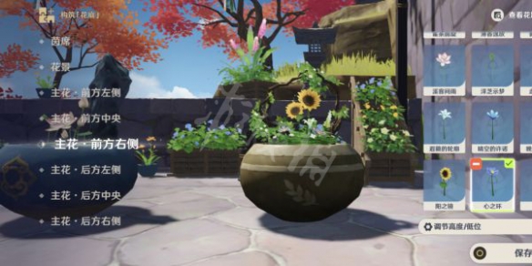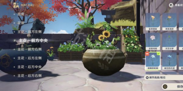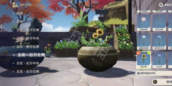 上述的花材选取步骤都选完后,点保存按钮即可完成盆景摆放任务。
