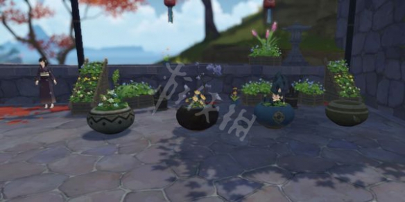 1.首先还是选对花盆,记得和柴染对话完后选花盆,而且如下图会有四个花盆,前面三个有花的都是我们之前3天做的,我们应该选择那个空的花盆来完成今天的插花任务。