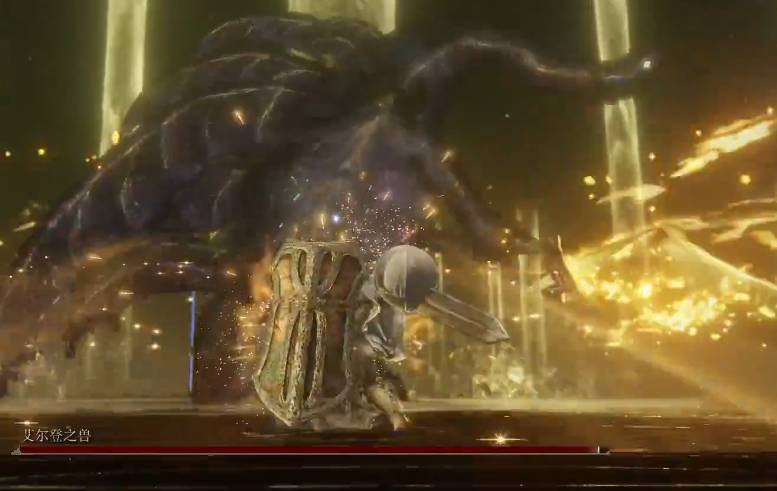 3、艾尔登之兽进入第二阶段会举起光剑打出一个范围输出,我们要看准时机,它的光剑落下后就闪避。
