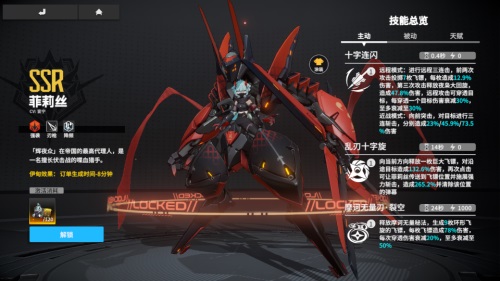 “这些家伙,还不明白自己的处境。”作为标准的“无口”少女,菲莉丝在战斗时自然是个狠角色。她擅长伏击,无愧于“喋血猎手”的称号。她的专属机甲属于高速型专用装甲,拥有威风凛凛的外形,震慑力十足。