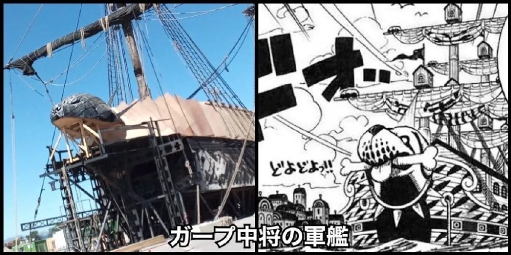 除了两处场景照外,还有诸多船舰的照片,每一艘船都还原的不错,与原作高度契合。卡普中将的船舰船首是“狗头”,虽然目前真人版还没有制作完成,但从剧照中看基本符合原作船舰的外形,不出意外的话问题不大。