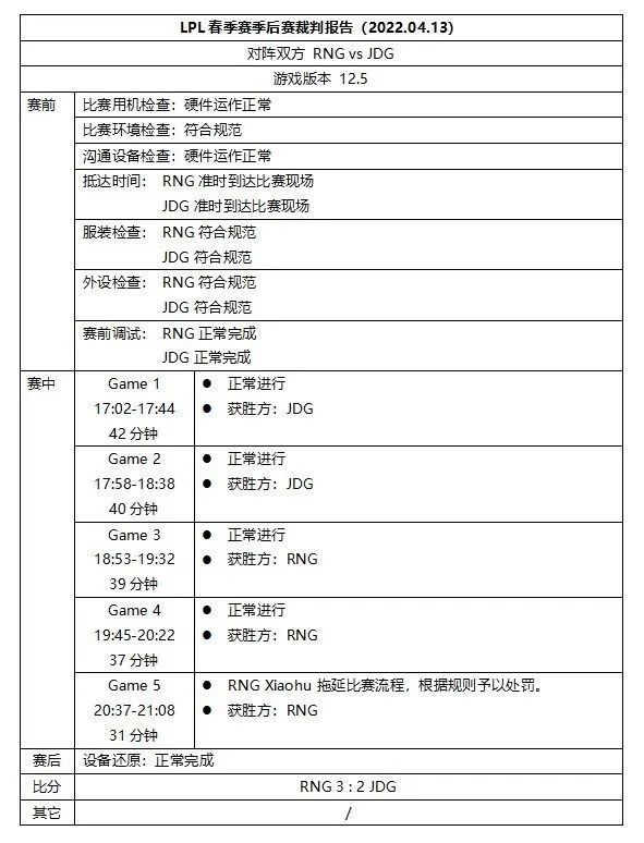 而在LPL四强赛两场BO5结束之后的裁判报告中,又有三个选手被处罚了,而且这三个选手都是来自获胜方的。