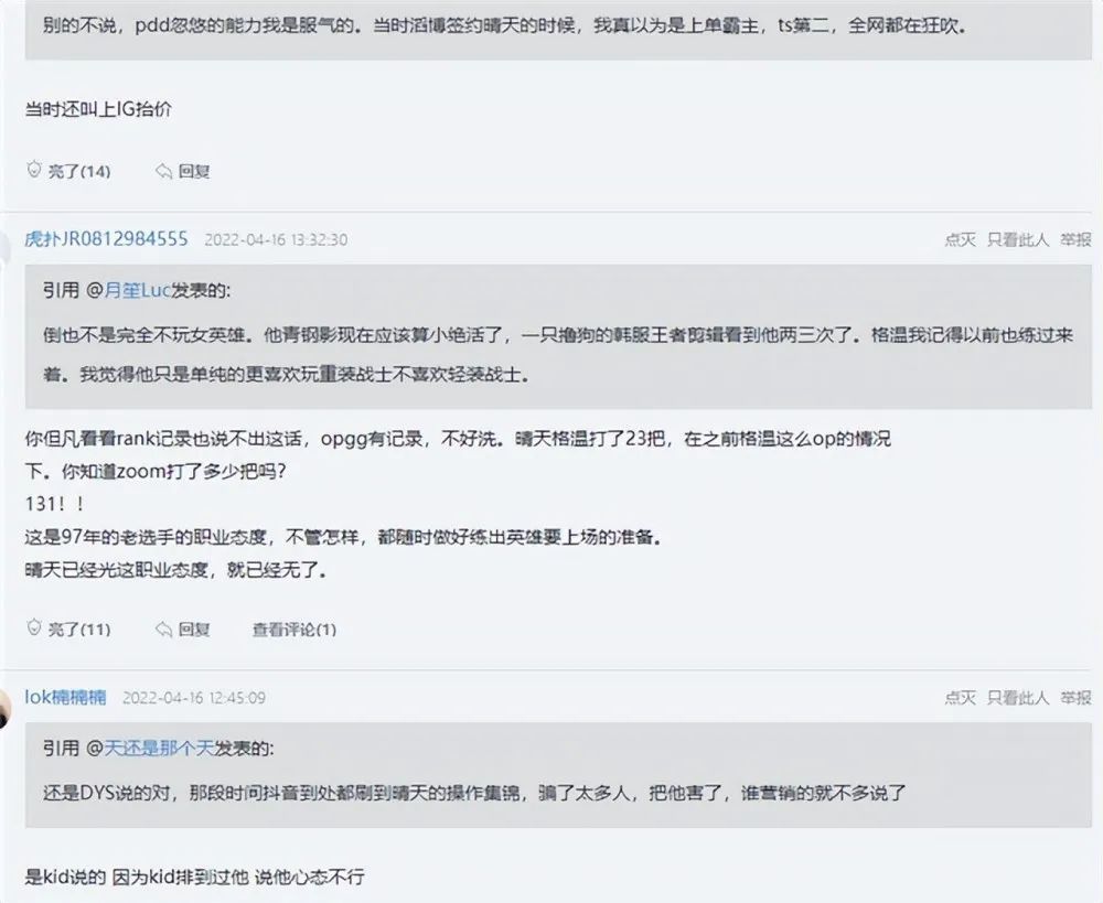 单论晴天这些话,大家也有不同的想法。一方面,晴天说的有道理。大部分观众尤其是凌晨两点去看他直播的观众,工资没有职业选手那么高。晴天能打上LPL联赛,即便是替补也赚了不少钱。他说自己比其他人过得更好,其实只是真实情况而已。