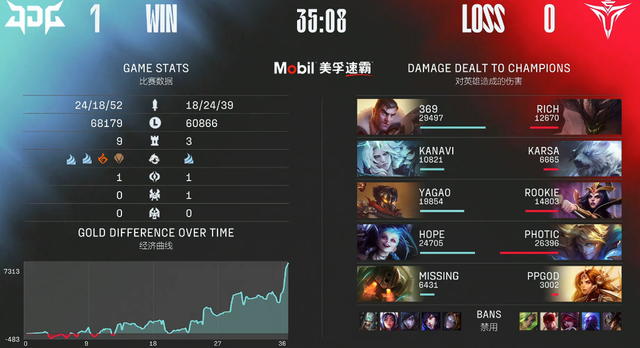 全场比赛,前三把的比赛369的表现可圈可点,但是,在第四把比赛中,他的杰斯被V5安排的明明白白的,感觉打完这个BO5 369整个人都是麻的。最后再次恭喜V5取得比赛的胜利。