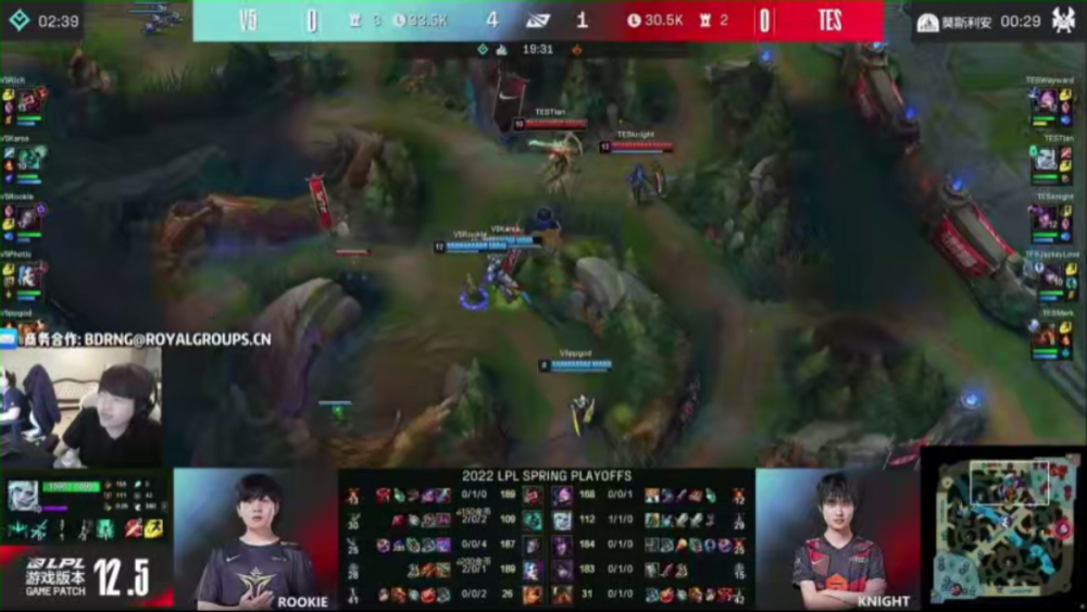 接着比赛到了19分钟,V5中野辅大摇大摆入侵TES野区,人马配合发条大招逮到辛德拉直接带走,可以说V5从开局到现在,一直到的都非常不错,中野辅配合联动把对面压的喘不过气,karsa的人马更是大杀特杀,就连姿态都不断感慨,这个中单玩的是真好,同时还不忘带节奏:这个时候如果能打字就爽了,这波浩轩杀完knight9直接公屏发四个字“我了解你”。接着Letme插嘴道:真的假的,有没有这样一种可能他打出来的是“中单差距”。这一句话就更过分了,Letme还真是不嫌事大啊。