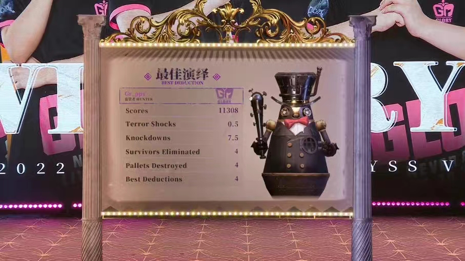 在随后进行的第二局比赛中,Gr战队在对方选中的地图红教堂中,选择由监管选手ppx先行上场,开局撞到对方熟练度不高的击球手,快速击倒并挂飞,后续连续击倒祭司、杂技和病患,对方无任何运营空间,拿下四抓;第二局下半场比赛中,Gr战队的求生者方由空军进行牵制,后续祭司及邮差辅助牵制,空军上椅时机子将近压好,后续开门战完成三跑。