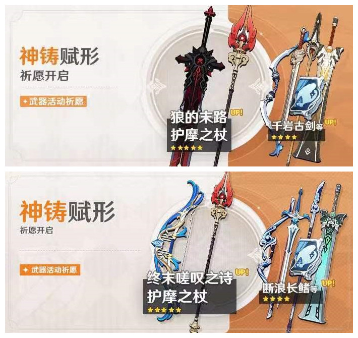 要说是因为雾切强度太高,需要下点毒骗氪,那同属S+的护摩之杖,第一次配的是狼末,第二次配的是终末弓,这待遇可相差太远了,总不能因为胡桃是亲女儿就区别对待吧。
