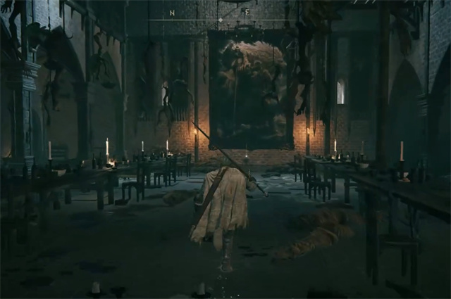 3 、下去之后往前走,会看到大厅中有一副巨大的画像,一直走到画像前;