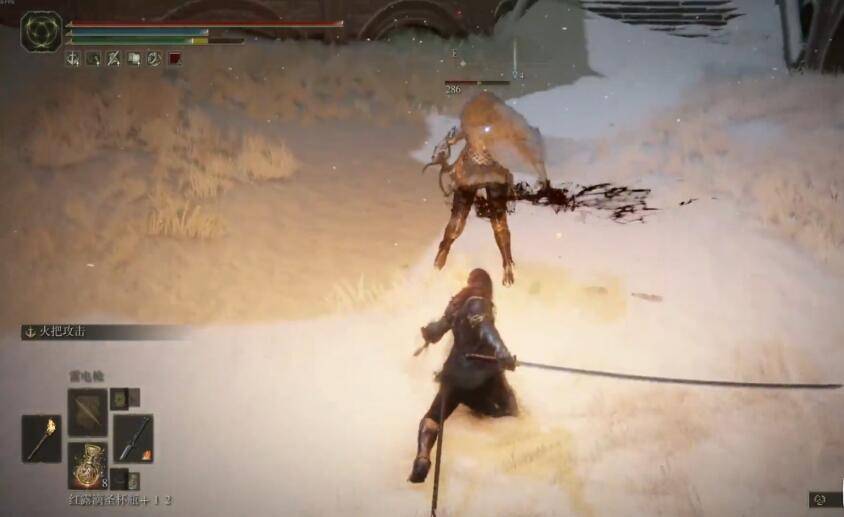 5、翻滚躲避后砍它腿(没躲过也不会掉很多血)。