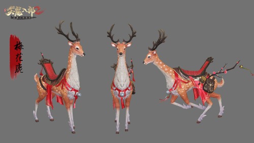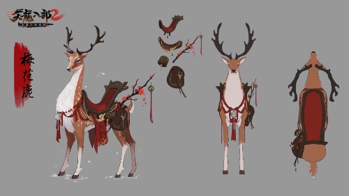 我们希望在游戏中加入更多具有传统文化的元素,因此在《天龙八部2》手游中我们选择了梅花鹿作为本款坐骑的原型,搭配上胸前的铃铛和红色绳结,不仅显得灵动可爱还有着借鹿获得好运的美好寓意!