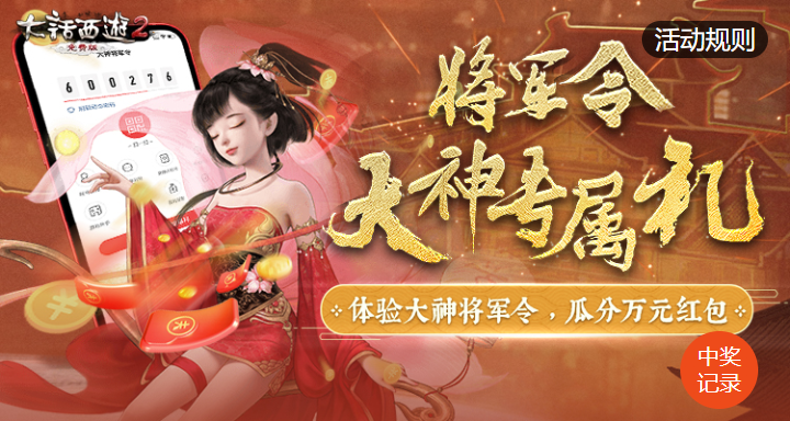 每日使用大神将军令扫码登录游戏,还能参与万元现金红包的瓜分!现在参与《梦幻西游》电脑版、《大话西游2经典版》、《大话西游2免费版》与《新倩女幽魂》四个圈子的将军令活动,现金红包、游戏点卡、道具周边,一举拿下!