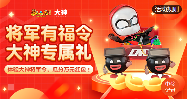 登录大神APP使用大神将军令扫码登录游戏,或完成每日浏览圈子等任务将获得抽奖券,抽奖最高可开出一千元现金红包。玩家累计扫码天数越多,赠送的抽奖机会越多!