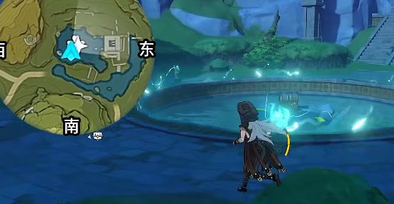 第三个仙灵触发岩柱后再池塘对面开启挑战。