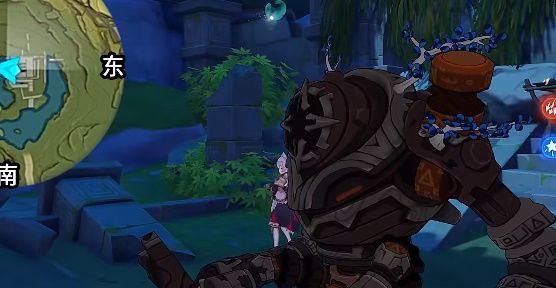 2、可以看到下方有一处遗迹废墟,我们落地后需要点燃四个火炬、触发岩柱、找到三个仙灵。