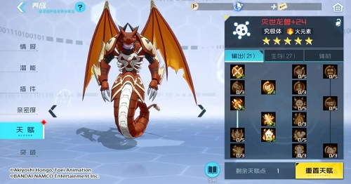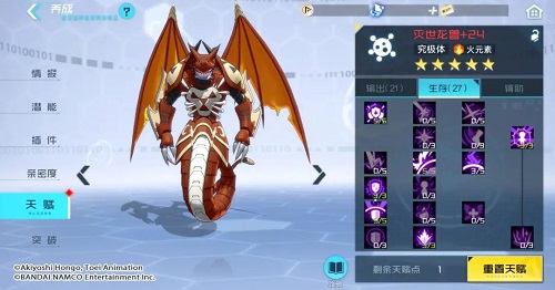 《数码宝贝新世纪》手游中灭世龙兽是一种输出型数码宝贝,很多小伙伴想晓得天赋怎么加,相信还有很多玩家不清楚,对此菜鸟小编特地为小伙伴们准备了相关的详细内容,让我们一起来瞧瞧吧!