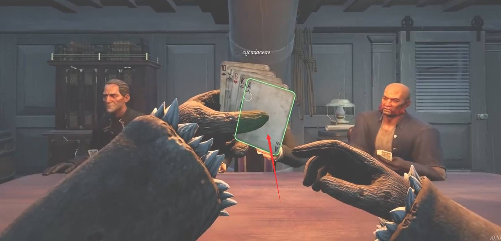 在Dread Hunger对局开始的德州扑克牌局中,小伙伴会拿到5张牌,并且每张牌都可以更换一次,如果小伙伴想要更换牌的话,可以使用鼠标滑轮选择想要更换的卡牌,当绿色方框框住想要更换的卡牌后,点击鼠标左键即可换牌。