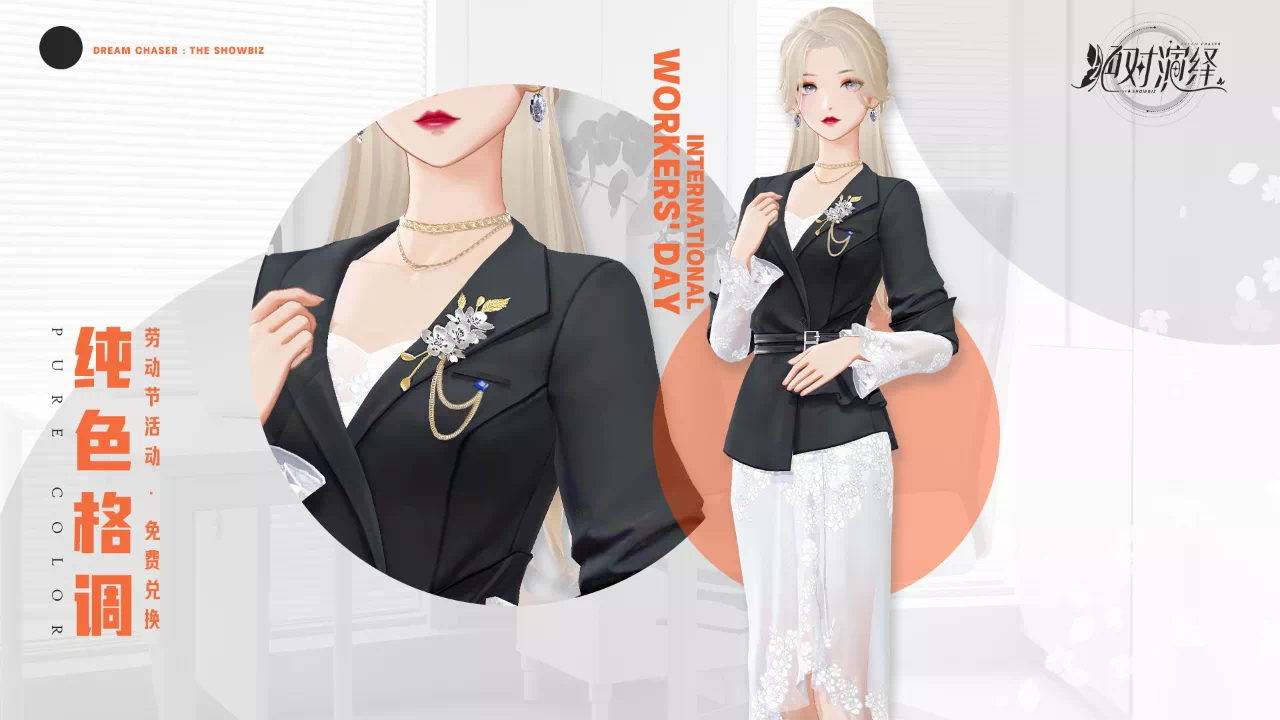 虽然新顶奢延期了,但等待时间也不会太久,5月5日更新后,“宫廷茶会”系列全新顶奢回归!并且在即将到来的5月,还会有另外两套外观和玩家见面。其中一套是只要参加五一新活动,就有机会免费兑换的专属西服套装【纯色格调】,剪裁合身的西装外套搭配白色纱裙和金银胸针,职场女性的气场一下子就立住了!