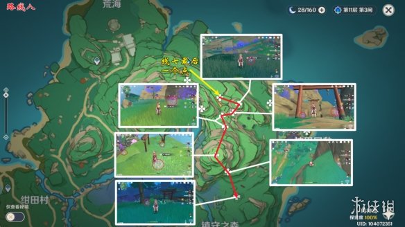 请依照图中顺序寻找,顺序按照了从高到低的原则,避免了不必要的攀爬。